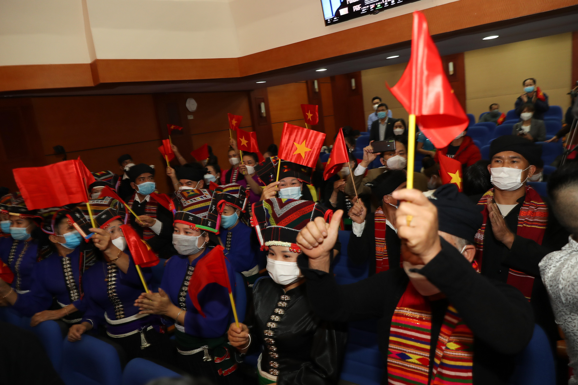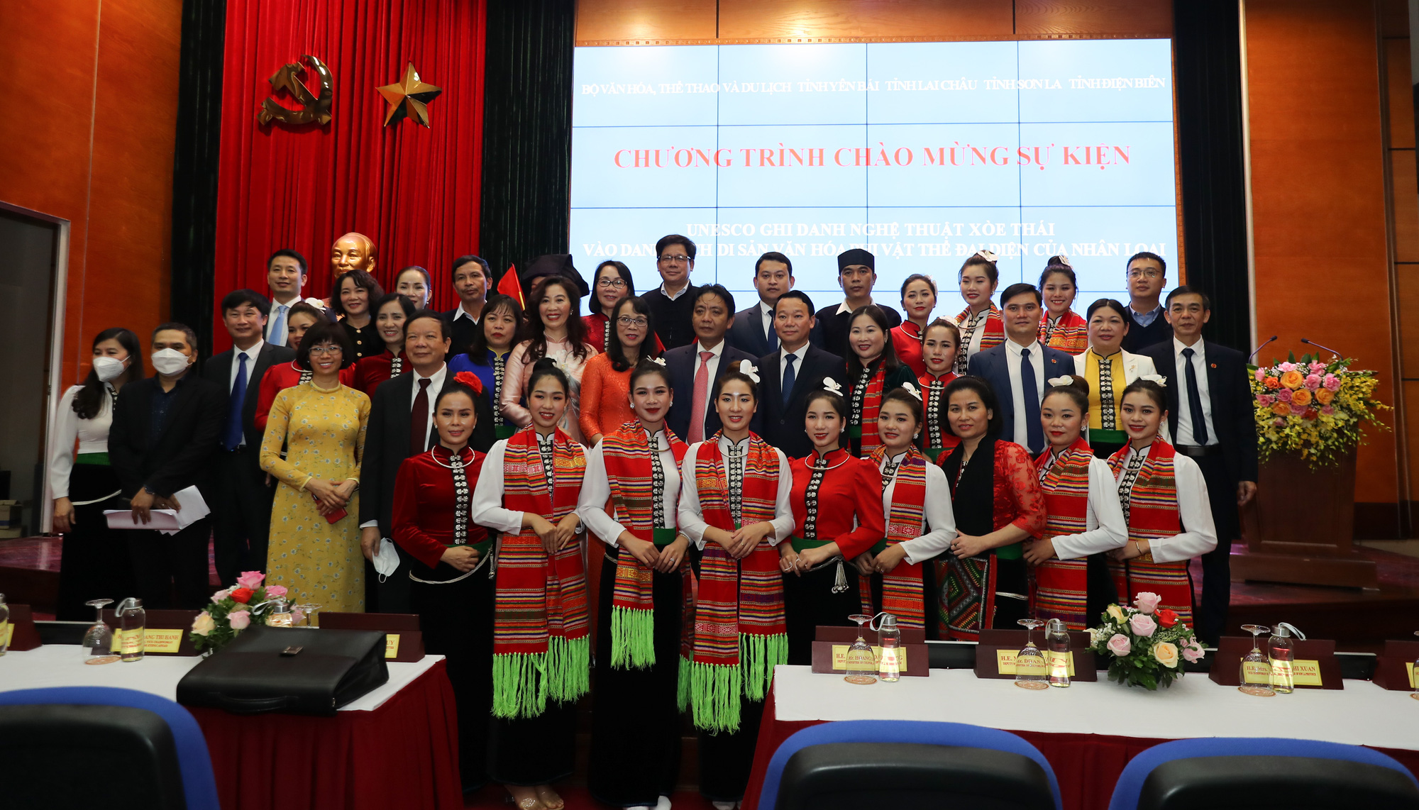 Các đại biểu và nghệ nhân bày tỏ niềm vui khi nghệ thuật Xòe Thái được UNESCO ghi danh
