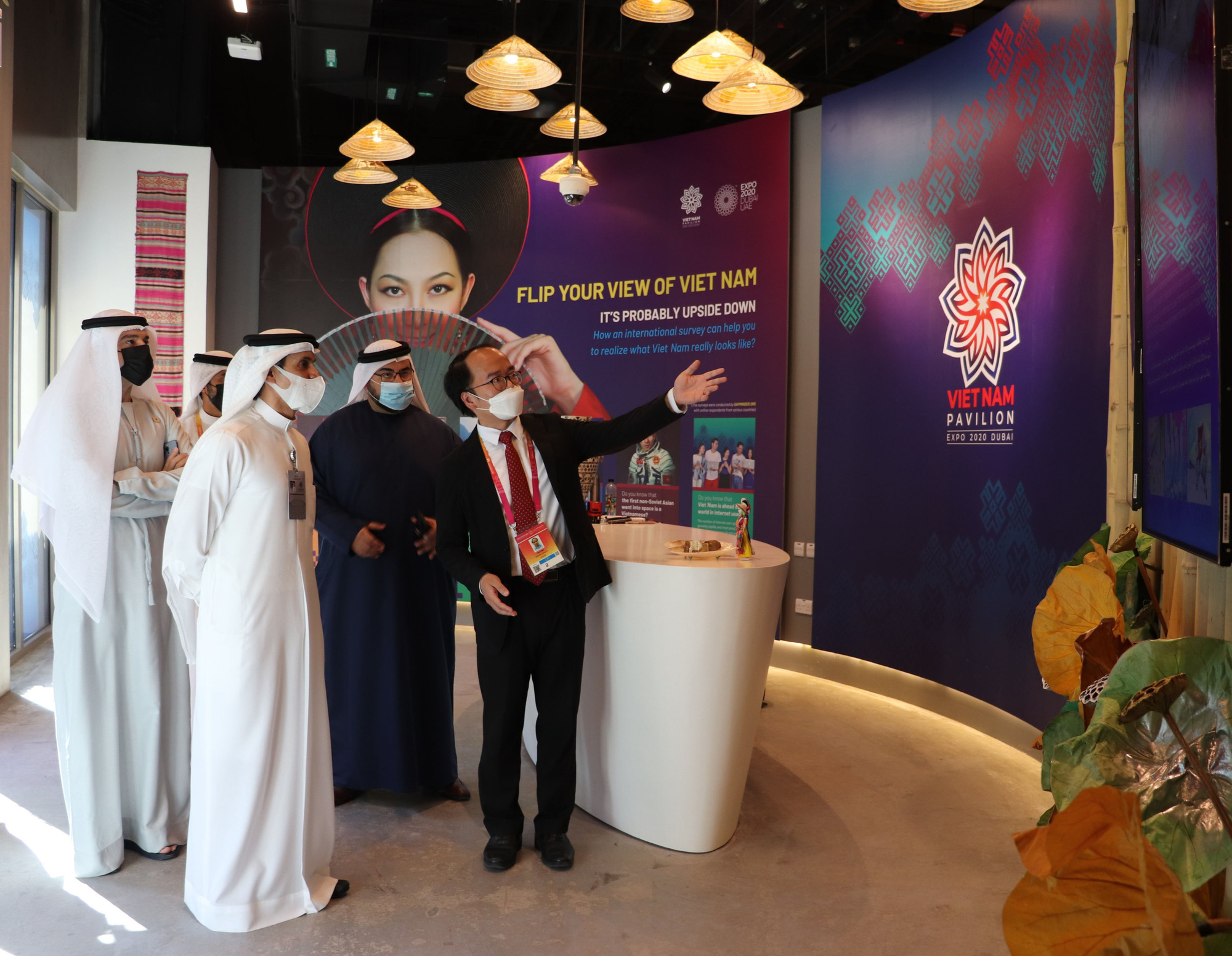 Đại diện Nhà Triển lãm Việt Nam đã trân trọng chuyển lời mời của Bộ Văn hóa, Thể thao và Du lịch, Đại sứ quán Việt Nam tại UAE, trân trọng đề nghị Ngài Hamad Buamim - Chủ tịch, kiêm Tổng Giám đốc Phòng Thương mại và Công nghiệp Dubai bố trí thời gian đến dự, phát biểu tại Chương trình “Gặp gỡ Việt Nam: Đất nước của những cơ hội” trong khuôn khổ Chương trình Ngày Quốc gia Việt Nam tại EXPO 2020 Dubai, đồng thời hỗ trợ Nhà Triển lãm Việt Nam trong các hoạt động kết nối doanh nghiệp giữa Việt Nam và UAE trong khuôn khổ Triển lãm Thế giới EXPO 2020, trước mắt là Hội nghị trực tuyến với chủ đề “Hợp tác kinh doanh và xúc tiến thương mại Việt Nam - UAE 2021” do Bộ Công Thương Việt Nam chủ trì, Bộ Văn hóa, Thể thao và Du lịch và Đại sứ quán Việt Nam phối hợp tổ chức vào ngày 16 và 17 tháng 12 năm 2021.